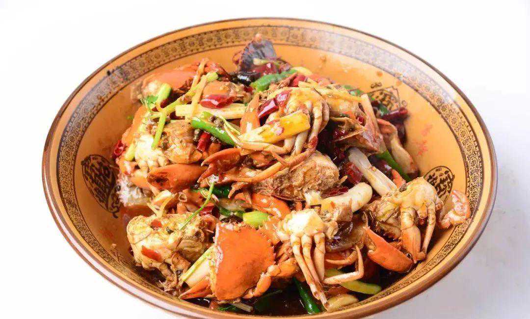 2.锅内放入色拉油100毫升,加入生姜片、拍大蒜、花椒和辣椒节炝香,倒入清理好的蟹翻炒(也可以高油温炸),等到蟹外壳颜色红亮后时,放入酱料和香料粉炒香,再加啤酒淹没河蟹,接着加入家常油和调味粉,小火焖烧约12分钟后,淋入湿淀粉勾芡,最后撒入香葱段炒匀收汁,出锅装器皿后,撒上香菜段和芝麻即可。