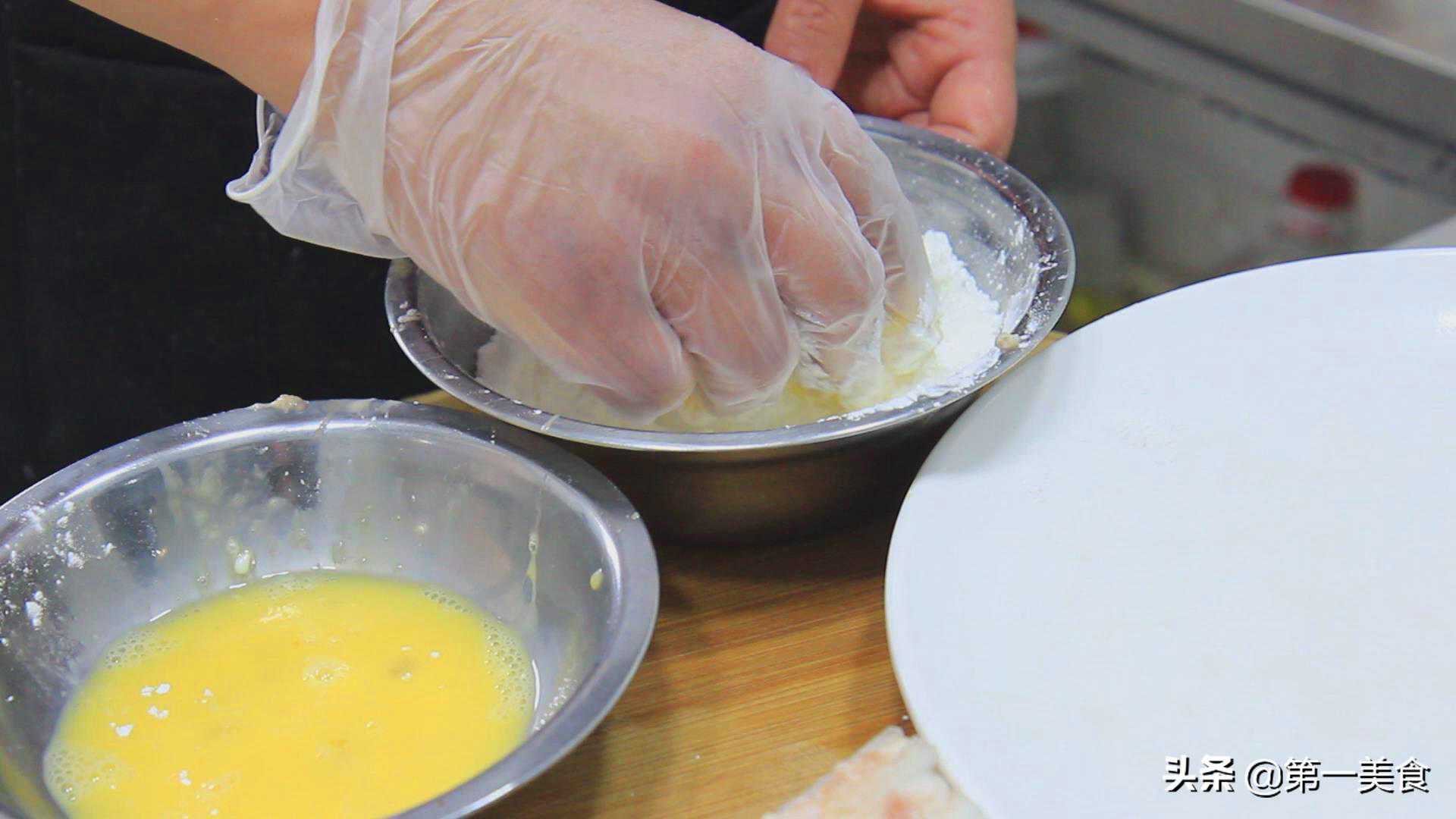 拿一个小盆,打入一个鸡蛋搅散。再准备一个小盆,放入玉米淀粉20克。把冬瓜块先蘸上鸡蛋液,再粘上玉米淀粉,然后放在盘中,用这样的方法,做完全部的冬瓜块。