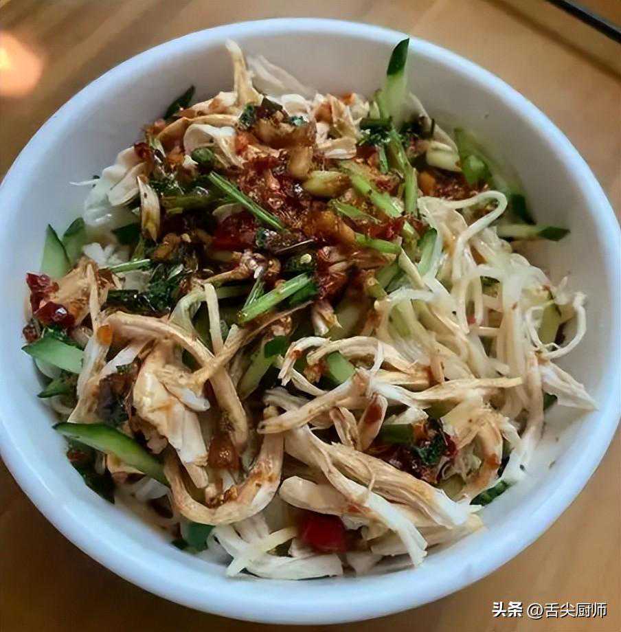 8、准备一碗清爽鸡丝凉面,享受凉爽的口感和丰富的营养。
