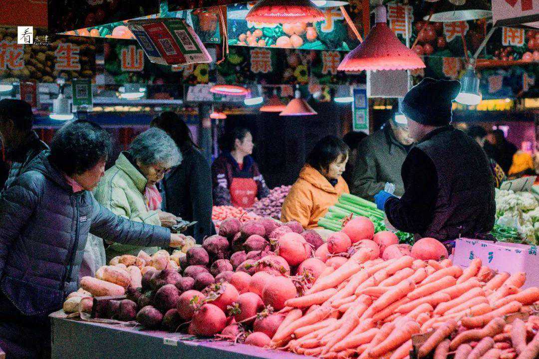 现在不同以往,交通运输、冷鲜技术进步,卖菜不用一大早的去进货出摊,人们不再一大早揉着惺忪睡眼去抢新鲜便宜的蔬菜。尤其是大冬天的,早上九十点钟,人群才渐渐的密集起来。