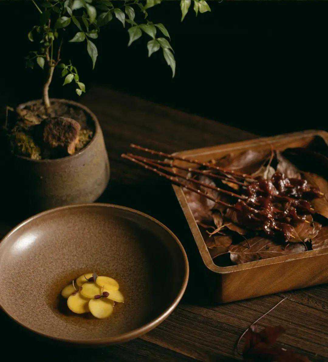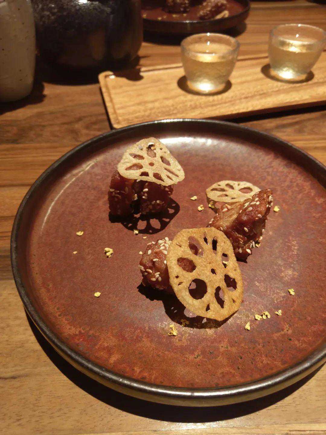 3款主菜,更是蔬食灵感的激烈碰撞。南乳蓮藕,两种形态的莲藕展现着不同的口感和气质,桂花是莲藕的经典搭配,除了撒上桂花,还配上了开胃的桂花醋。