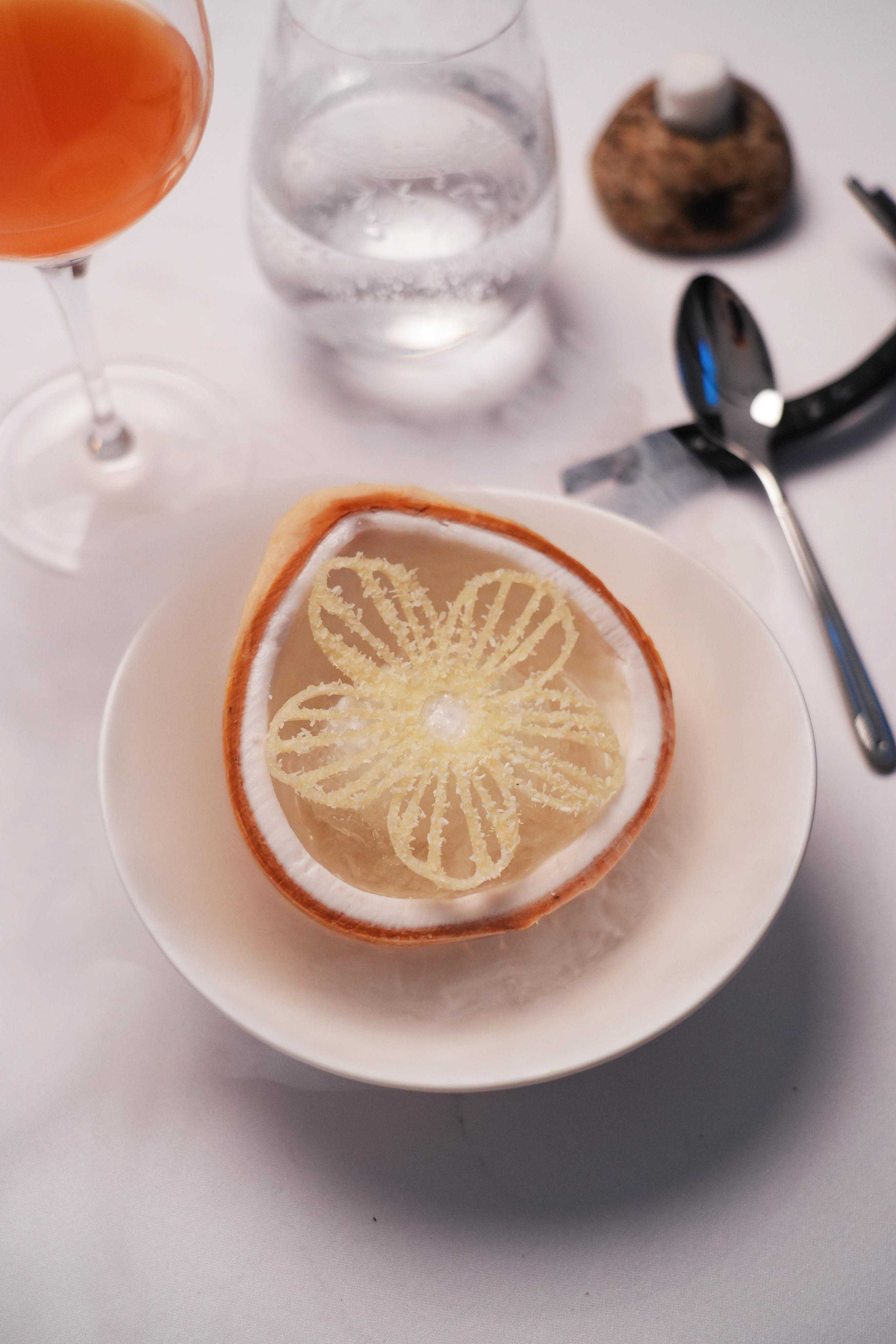 柑橘鸡蛋这个环节太有意思了。还以为是可生食鸡蛋,原来是一道甜品。很有惊喜感和创意。