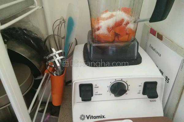 6、将蒸熟的南瓜泥取150克,加糖并用破壁机打成泥。