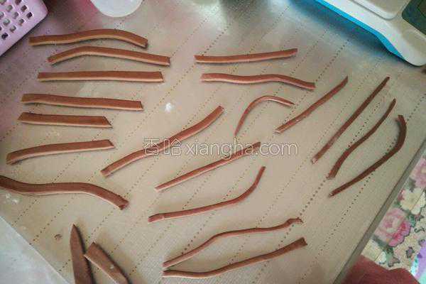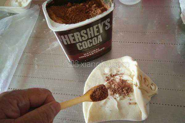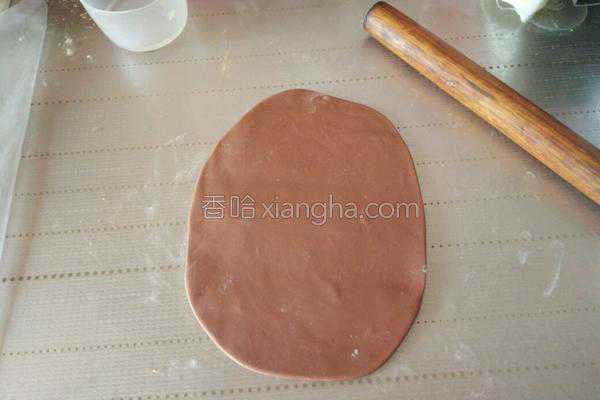 23、将剩余的白色面团加入少量的可可粉,揉匀成团。