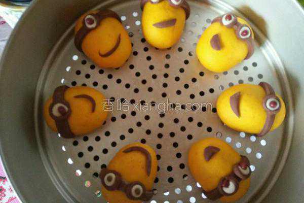 34、锅里加水,点火上汽,把醒发好的小黄人上锅开始蒸,用中大火蒸10分钟,关火,焖3分钟。