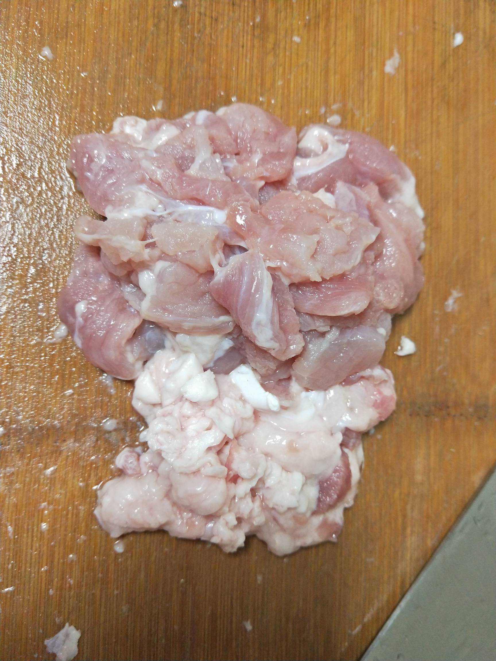 猪肉(瘦)一块、姜少许、蒜少许、花生油少许、精盐3克、酱油10克、胡椒2克