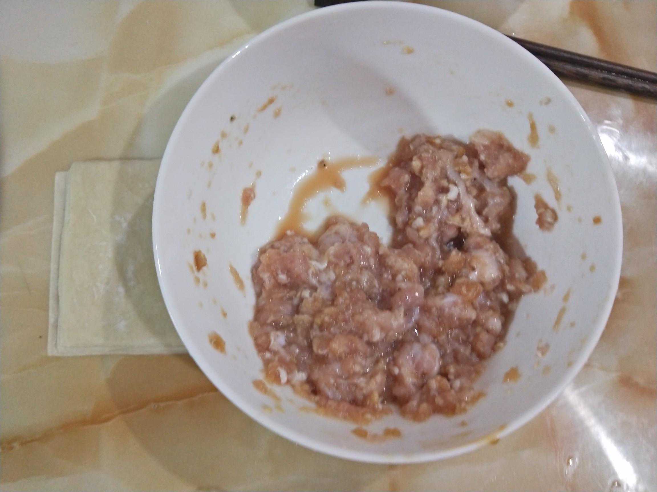 3.把剁好的肉馅加入姜蒜末搅拌均匀。