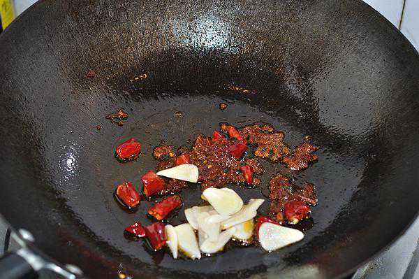 放入辣椒段、大蒜片超香。