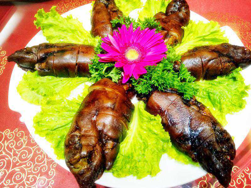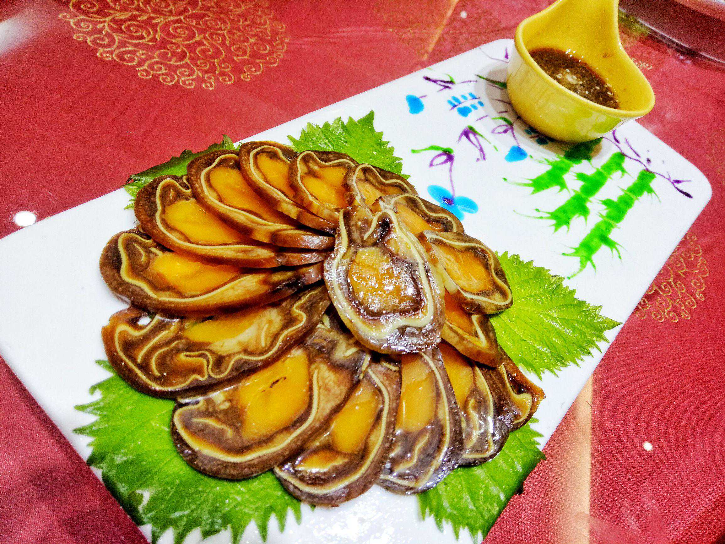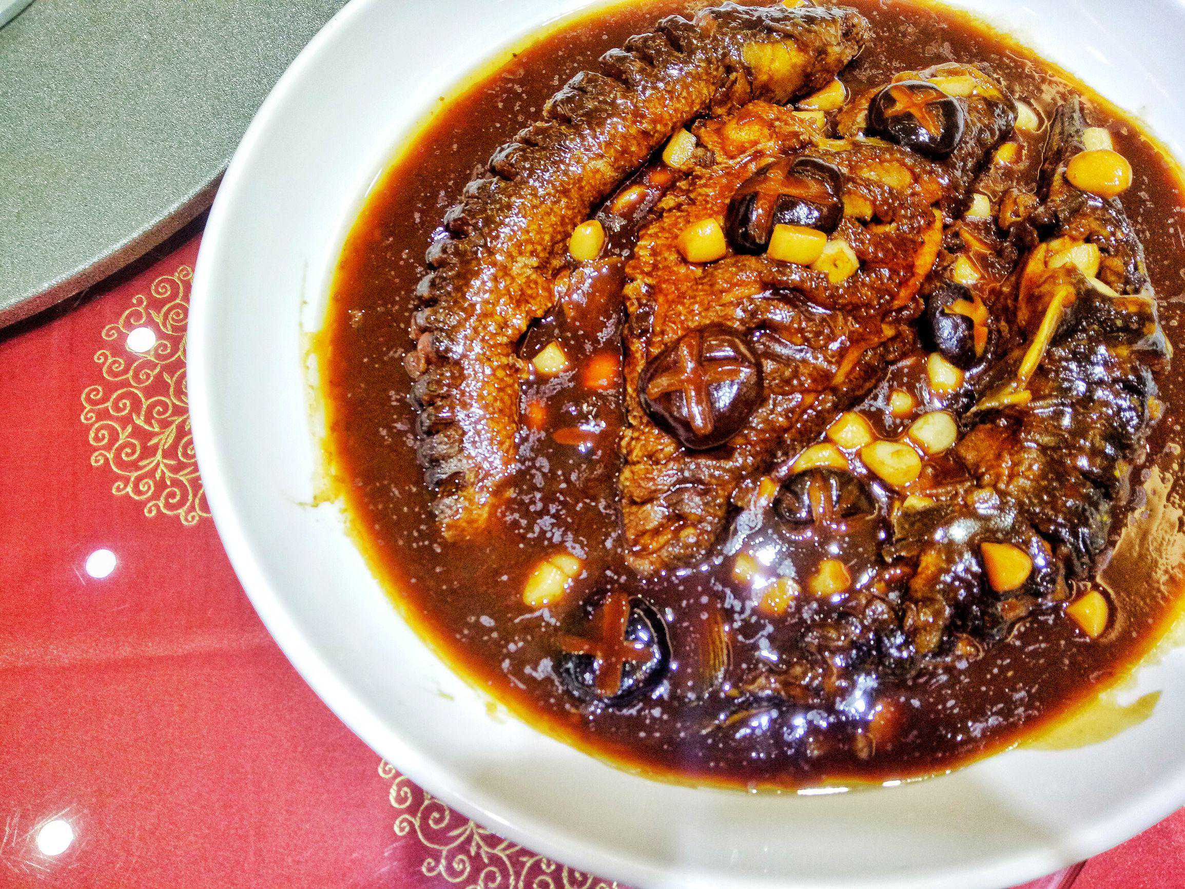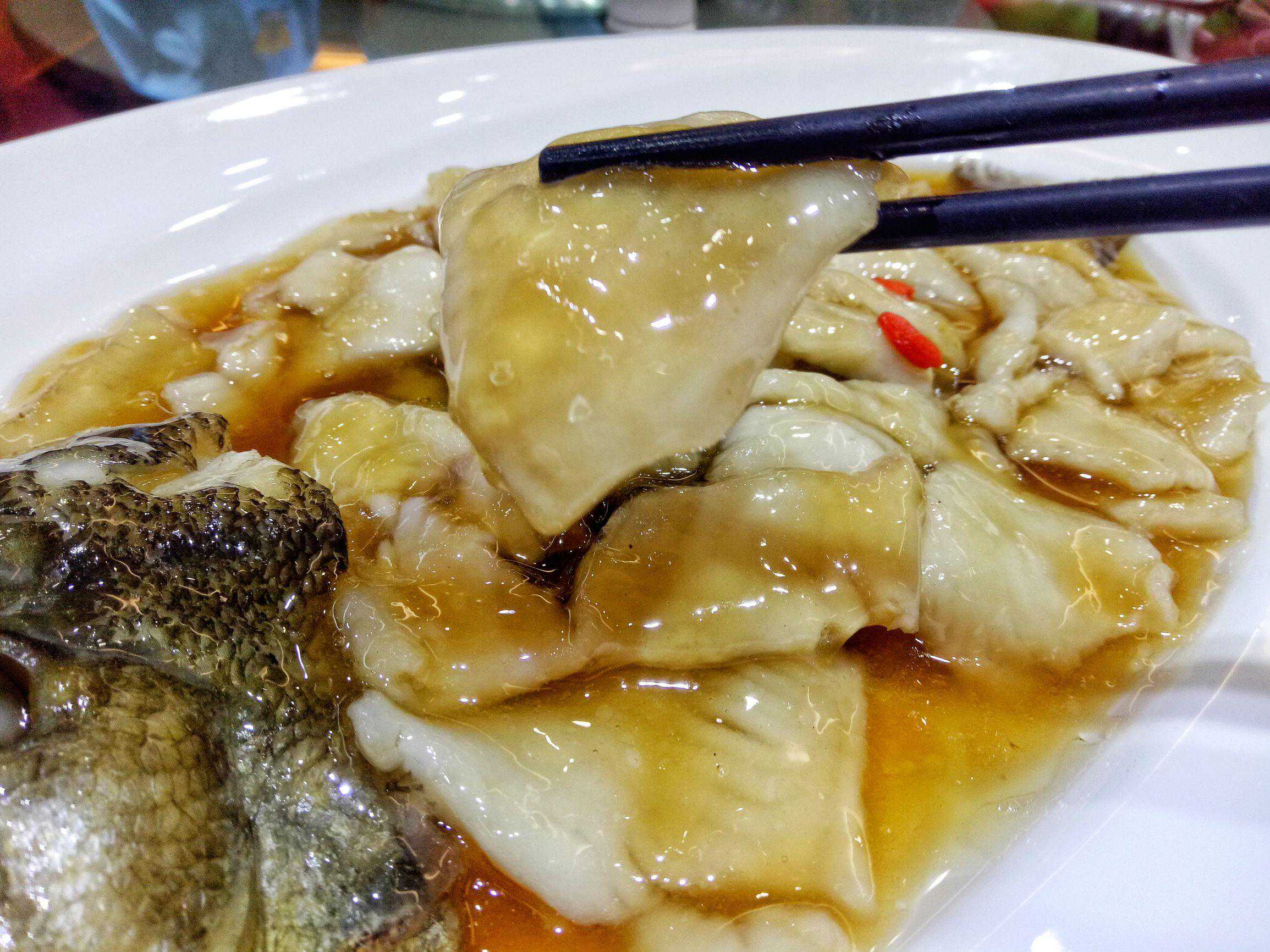 这道菜,名字霸气。有江有湖还有海,一盘便是天下江湖,这红烧江湖海是紫玉饭店宴席之头牌,因选材烧制极其繁琐,故此要想一品其味必须得提前预定。这江湖海,可是选用来自江湖海三水的鱼类,用红烧做法汇集一盘,江中的中华鲟鱼、湖中的草鱼、海中的梭鱼,肉质嫩、肥、紧,因不同的水质孕育着鱼有不同味,湖鱼土味重,海鱼腥味重,鲟鱼难得,故此要将这三种鱼料理的融合一味却又各有其道,确实是不易。