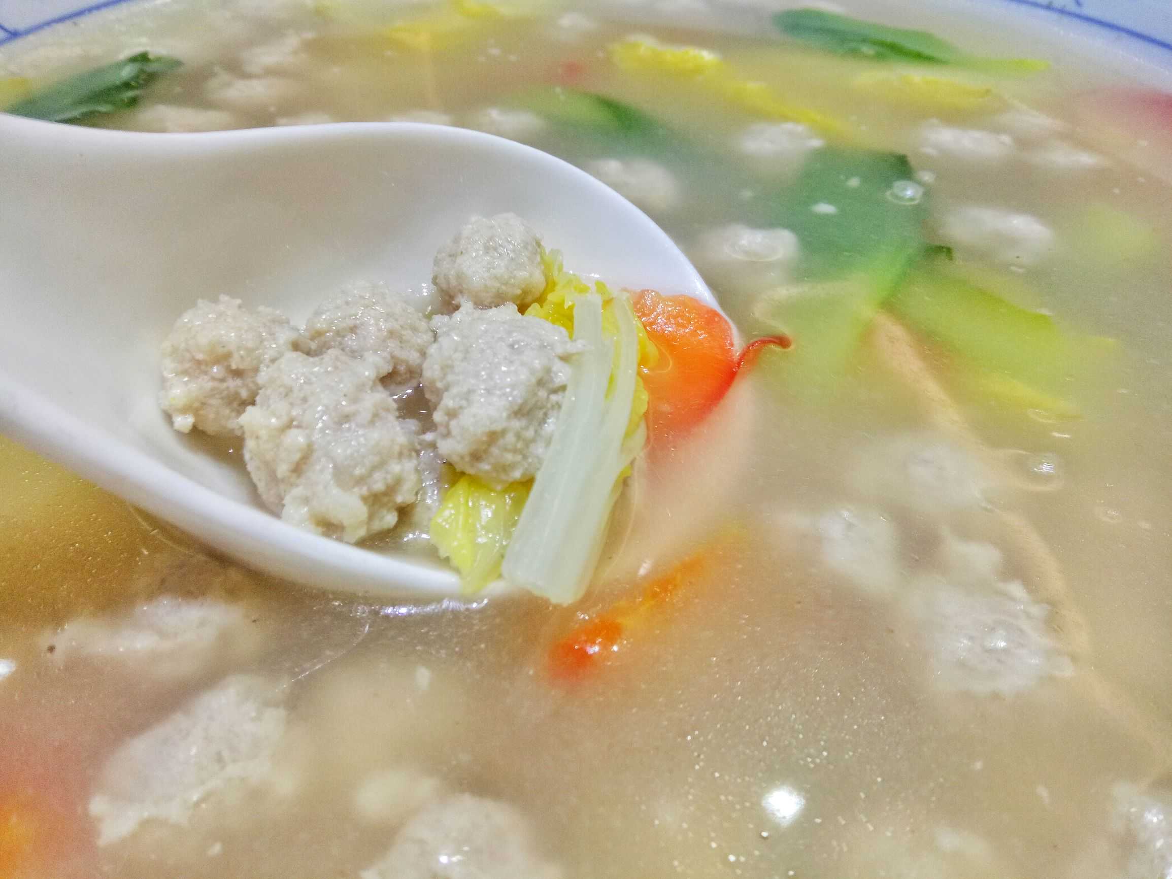 丸子汆的个头精致,汤清爽肉香,颜色搭配十分得益,一碗肉丸汤,梳理了肠胃!