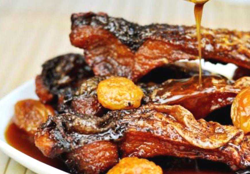 这道鱼肴的亮点在于酸甜味中带着酥香。主要是取花鲢的鱼尾1条(约1000克),先将其斩成大块,纳盆后加盐、老姜、大葱和花雕酒,拌匀码味1小时。接下来准备浸汁。往锅里下入袋装酸梅、花雕酒、清水、红糖、冰糖和盐,小火熬20分钟至汁水浓稠时,起锅装玻璃容器内,密封备用。往锅里倒入色拉油,烧至六成热即下码好味的鱼块,炸至酥脆捞出来。把炸好的鱼块趁热放入雕梅汁水中,加盖密闭好(其间翻动几次以便入味),待其自然冷却后,置冰箱里冷藏一天,取出来装盘便可食用。