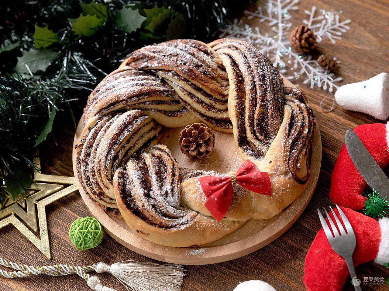 浓浓的圣诞气氛,怎么能少了应景的美食呢,这款花环面包好吃又美丽