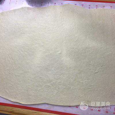 12、撒点手粉,开始擀面皮,大约50*25cm