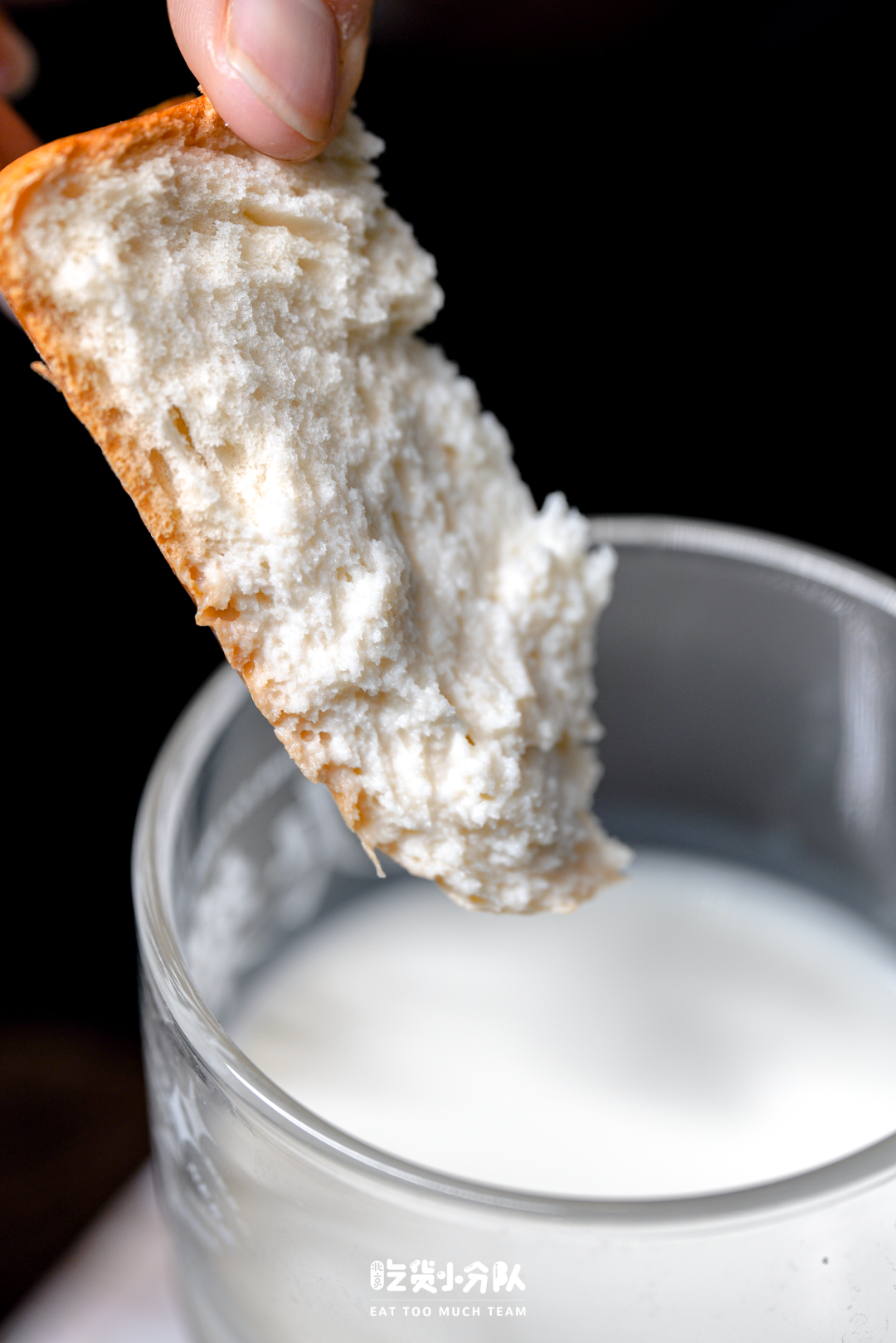 【乳白面包】是第一次见,首先外观就很特别很可爱。打开后整体面包也特别夯实,偏硬。据说是因为面团醒发程度很低。于是发现搭配牛奶吃很搭!推荐给大家。
