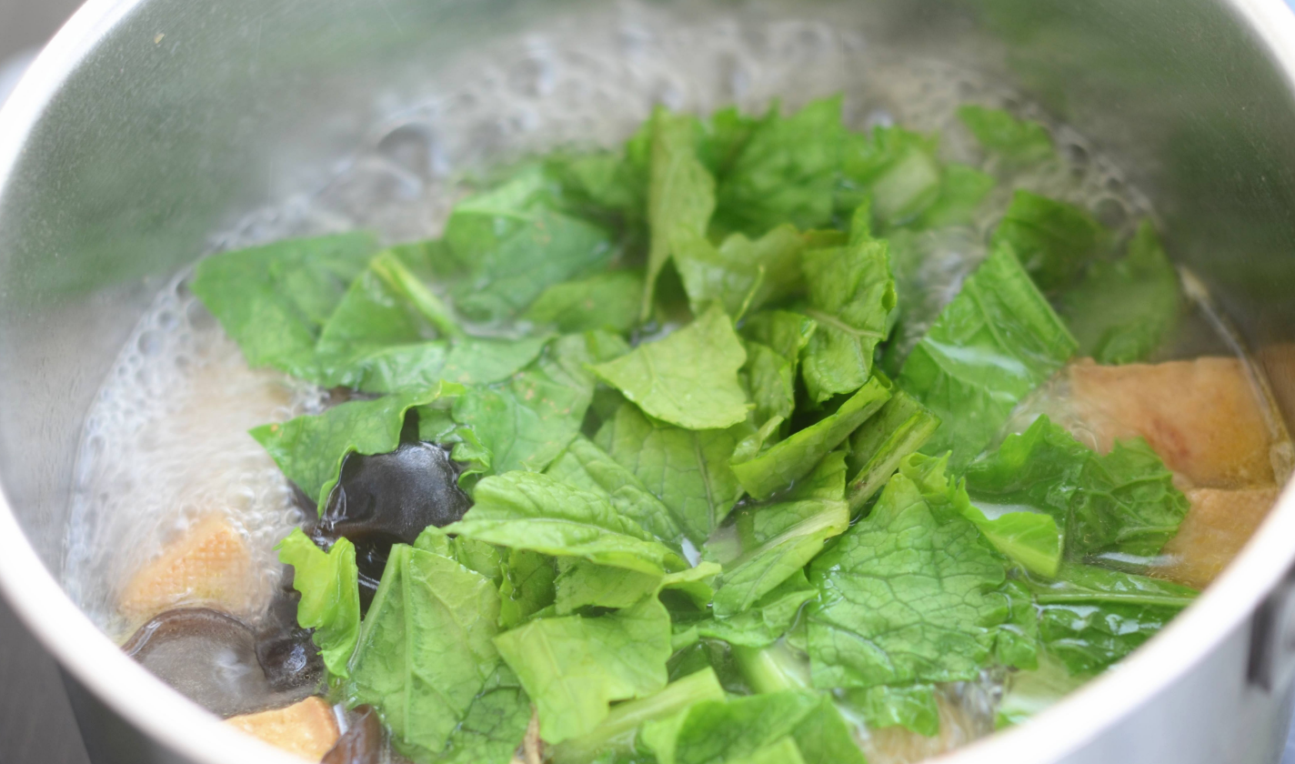 准备食材如下:小白菜1把,香菇6个,色拉油2大匙,食盐1茶匙,鸡精少许,蒜泥1大匙,白糖1/2茶匙