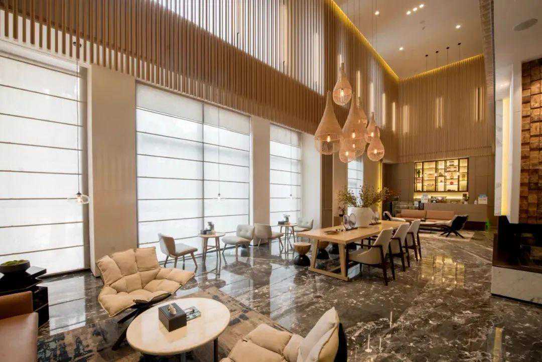 「大蓉和·馥庐」内部设计集合现代新中式的轻奢风格,表达着大气奢华温馨的感觉,灯光氛围的柔和与色调的清雅,既具备了强烈的现代感,又兼备中式风雅的人文气息。