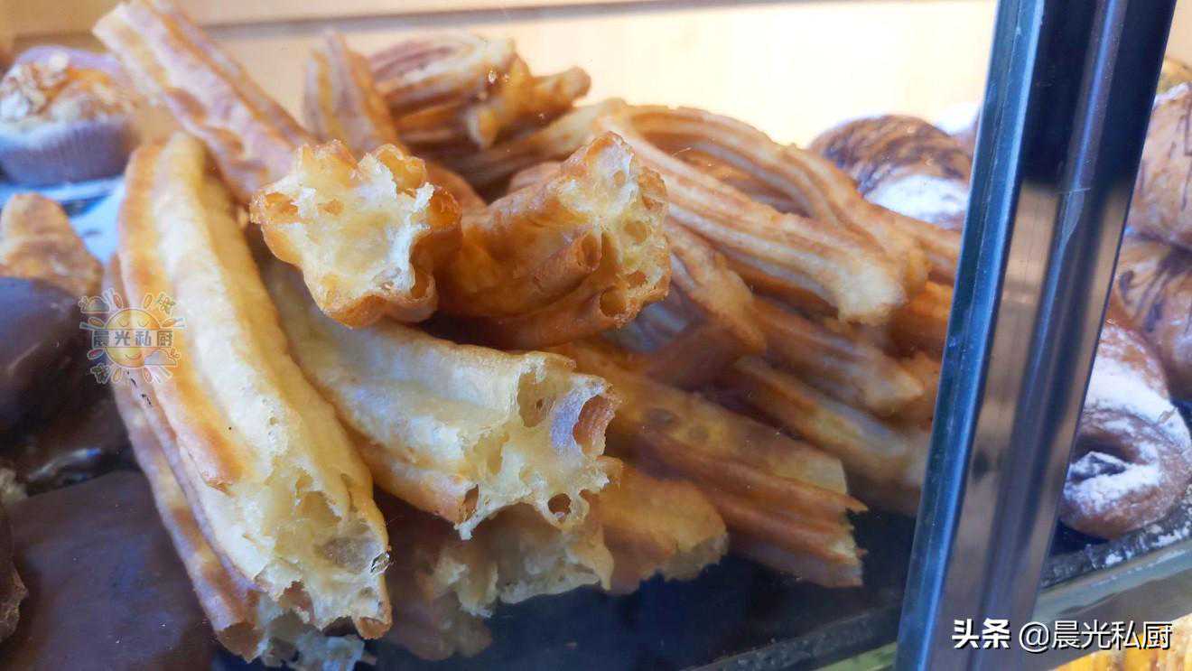 除了大家常见的吉拿棒之外,在上图我们也可以看到另一款更像油条的甜点,称作Porras(波拉),它的口感像是不脆的油条,空气感比油条稍低,在部分甜点店可以找到,马德里地区相对流行。