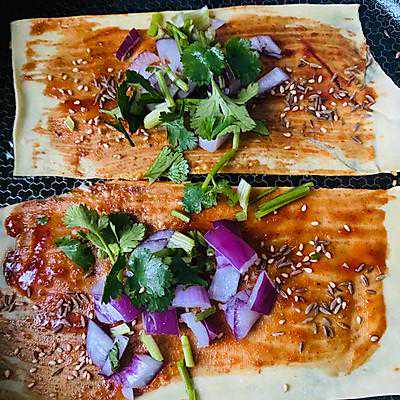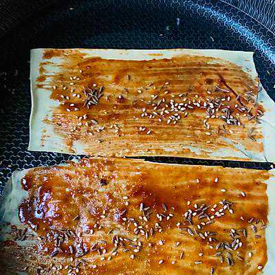 3、刷完酱撒上孜然和芝麻