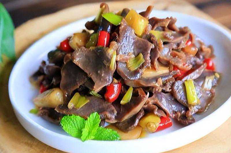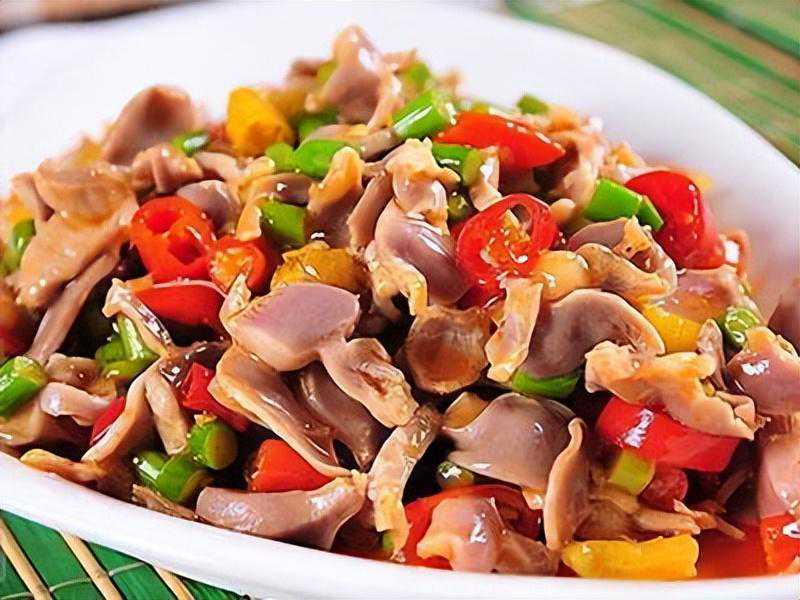 1.鸡杂处理干净,盐,生粉,揉捏去粘液。