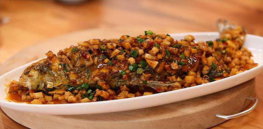 1.将鲫鱼洗净,去鳞及内脏,放入蒸盘内,在鲫鱼上洒上淡豆豉、料酒、白糖。