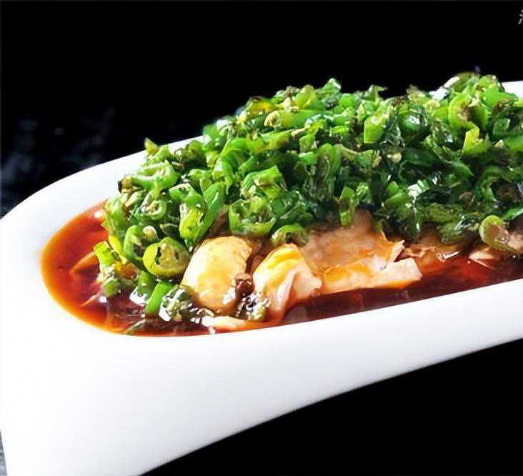 3.热锅下油,下泡椒末,野山椒,下墨鱼籽,仔姜,鲜汤,味精,鸡精,水豆粉勾芡翻炒烧制出锅。