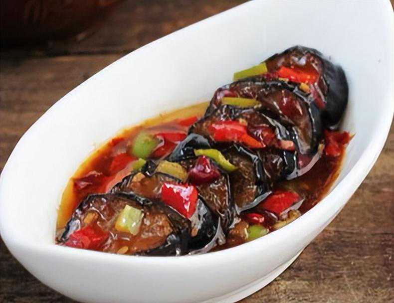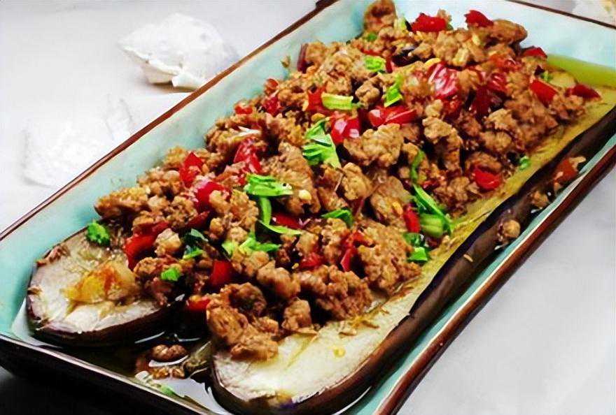 3.茄子切夹刀片,加入肉馅,裹全蛋糊。入锅炸熟即可(复炸一次)。