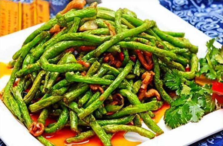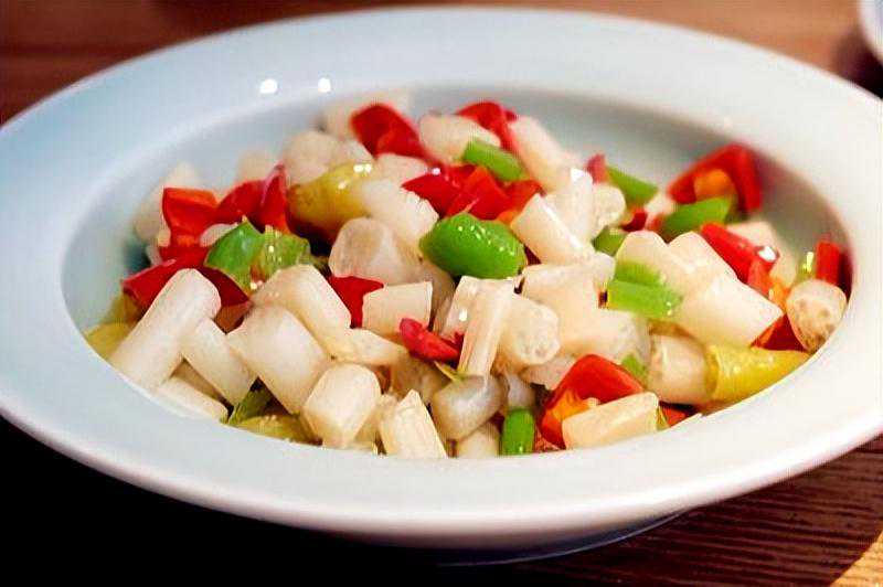 2.净锅入油烧热,下花椒、姜末和蒜粒一起炒香,另把泡豇豆段和青椒段放进去,翻炒几下再加入美蛙肉,放调料炒成麻辣味便起锅装盘即成。