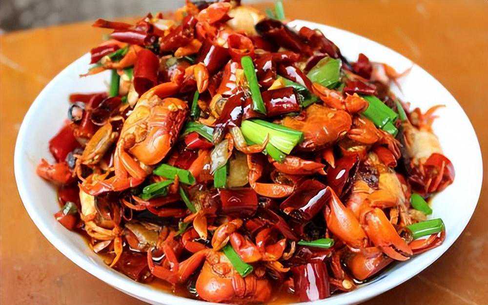 3.热锅下油,干辣椒花椒,香辣酱,姜蒜末,青红椒,洋葱,芹菜段,炒香,盐,味精,鸡精,料酒,海蟹,花椒油香油,葱花,熟芝麻炒匀出锅即可。