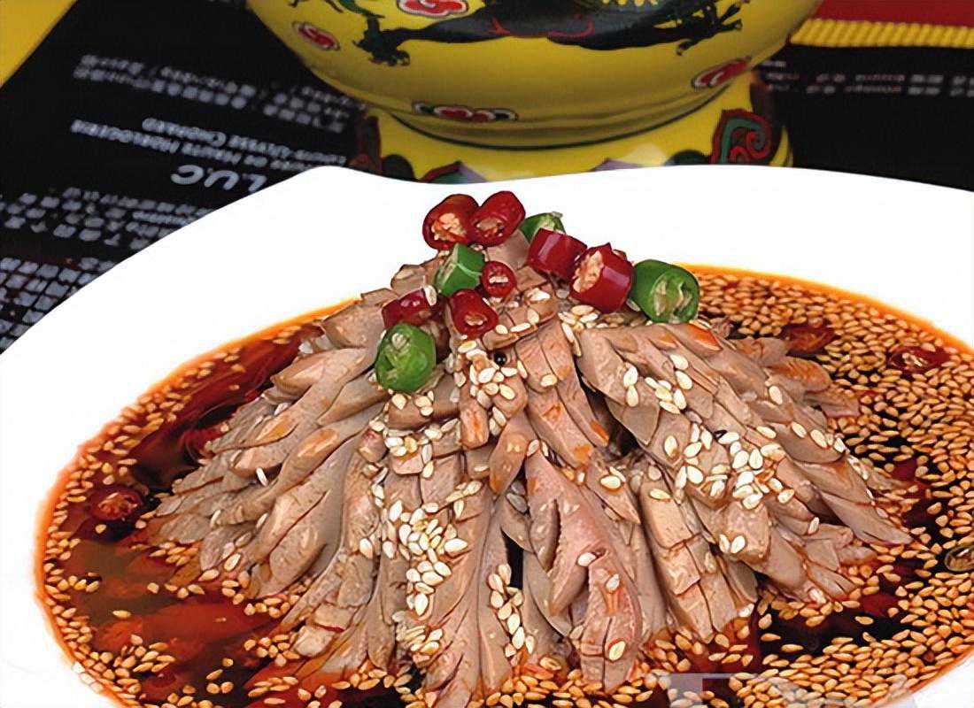 2.猪腰洗净,去腰臊,改花刀,汆熟沥水,装盘淋上碗汁即可。