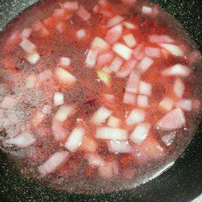 4、倒入洋葱丁炒出香味