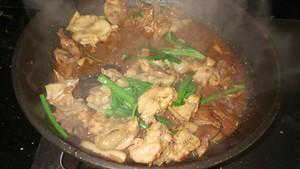 2、须猛火快速翻炒鸡肉,注意加水焖焗的时候水不要太多,不然就变成焖鸡了。