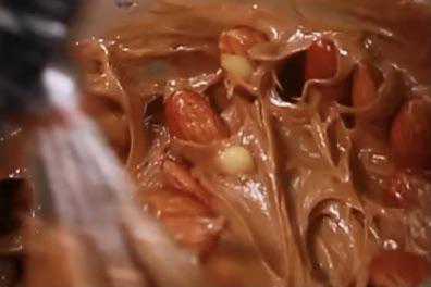 7、趁热加入黄油搅拌均匀,再次加入杏仁搅拌均匀