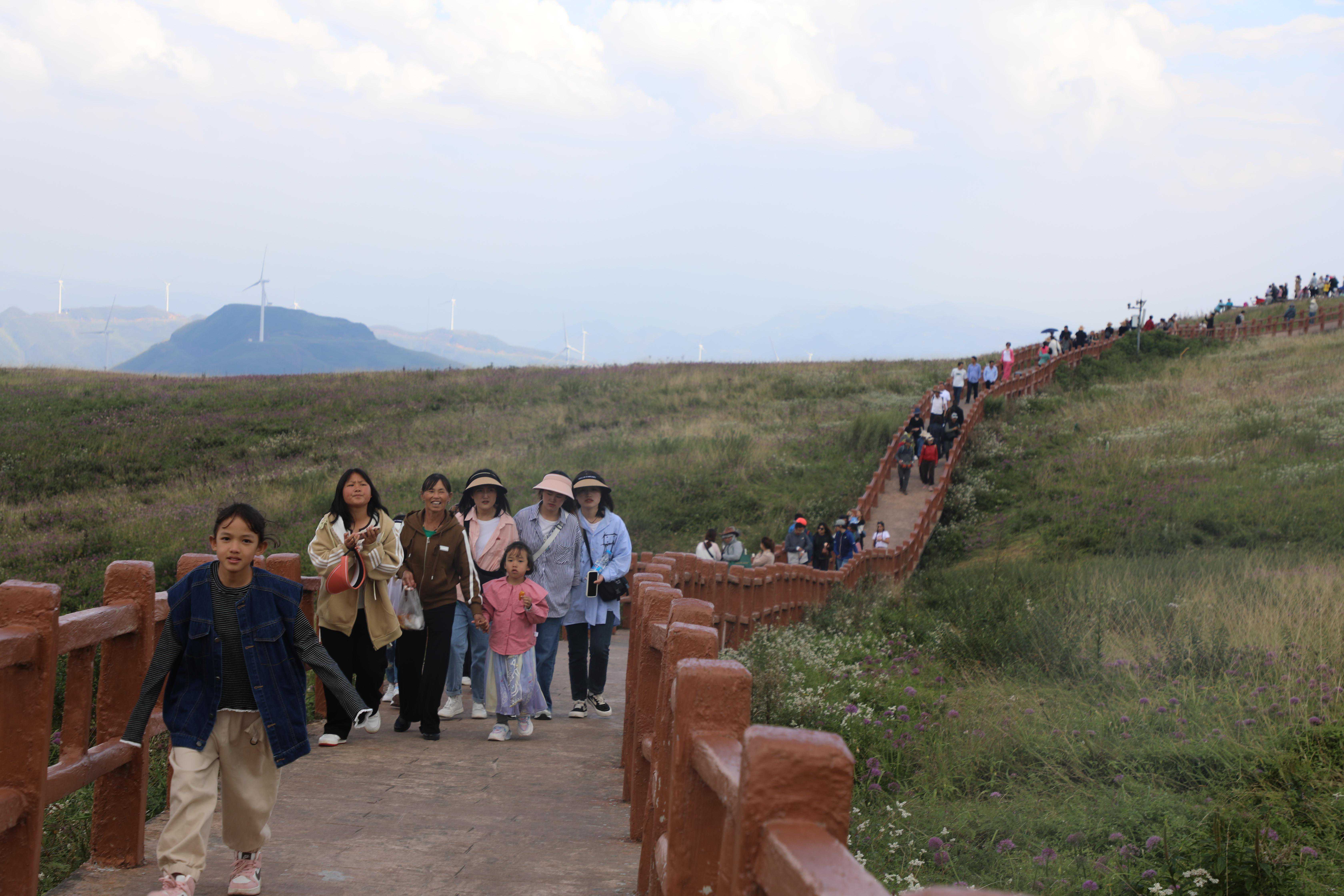 “来趟贵州屋脊.韭菜坪,太划算了。”9月2日下午4时许,记者赶到阿西里西.韭菜坪景区大门口,跟着摩肩接踵的游客,排队等候坐缆车游览景区的间隙,突然听到成都游客简晓玲跟她成都的好友通电话,邀约她的好友来贵州毕节赫章旅游。