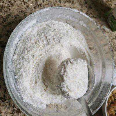 2、面粉过晒,加入白糖,盐,泡打粉,搅拌均匀