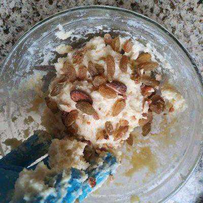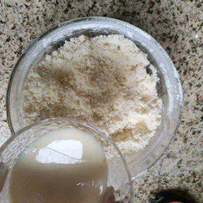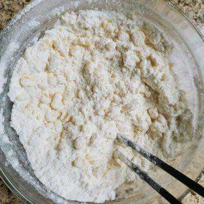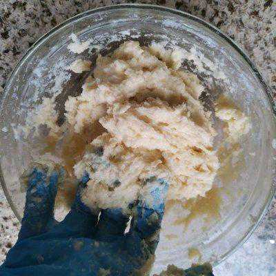 3、加入融化的黄油,搅拌成粗颗粒,用手搅拌均匀