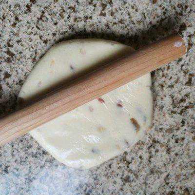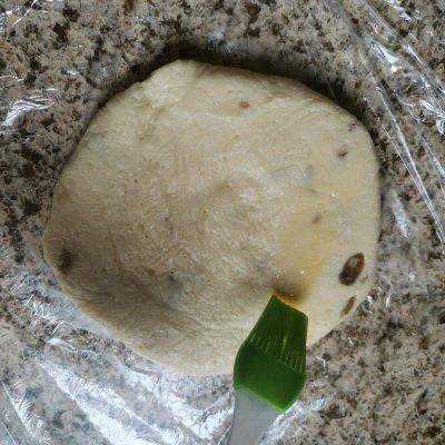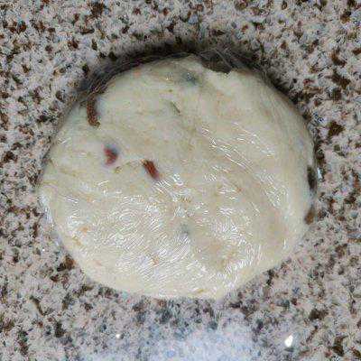 7、搅拌均匀后,用保鲜膜包起来,压扁。放入冰箱冷藏半个小时