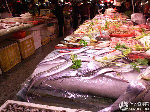 这里出现的带鱼、春只、黄只、巴浪、马鲛、鲳、沙尖、赤棕、红鱼等等都是潮汕常见的渔获,潮汕的菜市场鱼贩摊位也是占了很高的比例,各种各样渔获琳琅满目。下图左下角的野生龙趸鱼头和鱼身,像这种体型巨大的鱼,在别的地方菜市场也是很难见到的。