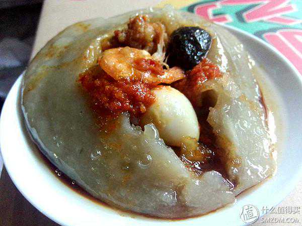 简单地说就是糯米灌肠,取的是猪大肠中段而不仅仅是肠衣,调料跟其他小吃一样,也是一如既往的丰富,包括糯米、猪肉、香菇、虾、莲子等,煮熟后蘸甜酱食用。