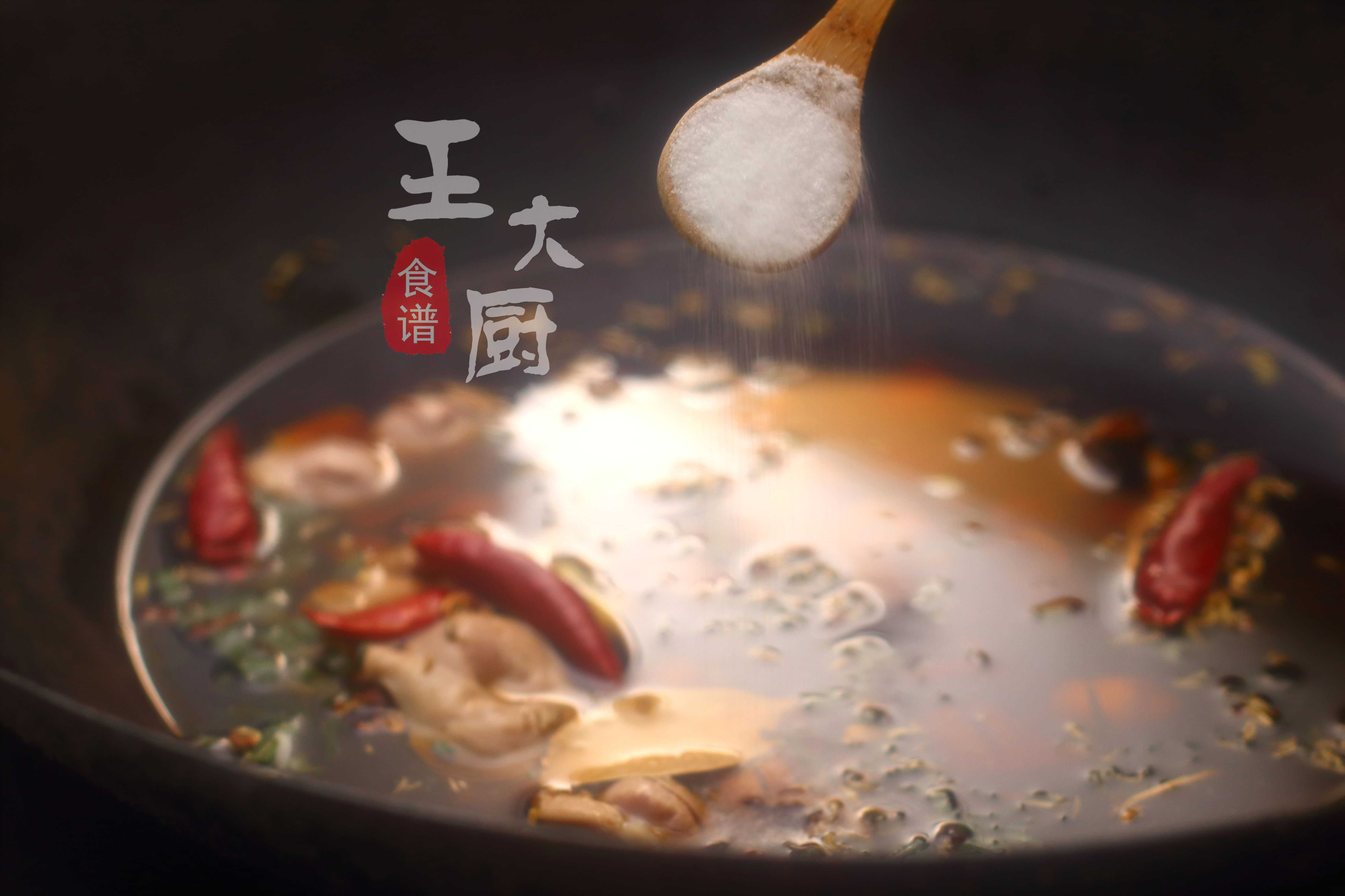 7、再准备适当量的盐巴放在锅中,进行调味。