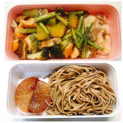 2、烤三文鱼时蔬、香煎巴沙鱼、红烧萝卜、荞麦面