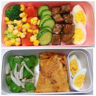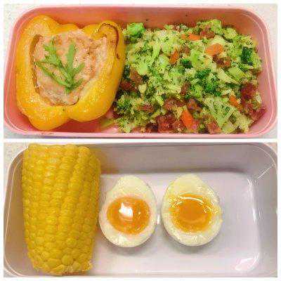 6、蒸彩椒鸡胸肉、西兰花炒饭、玉米、鸡蛋