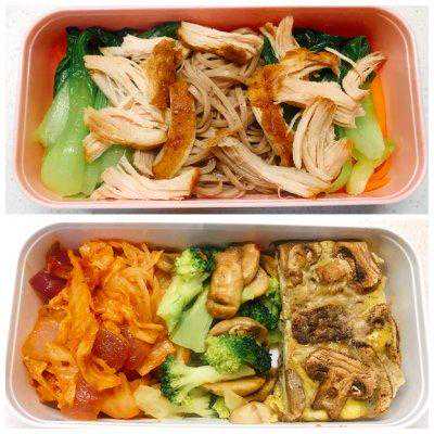 11、辣白菜炒魔芋丝、西兰花炒口蘑、烤鸡蛋口蘑、鸡胸肉荞麦面