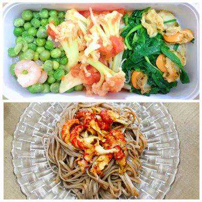 21、豌豆虾仁、西红柿花菜、韭菜炒扇贝、小龙虾荞麦面