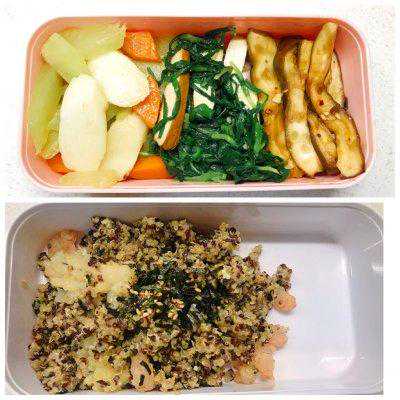 22、芹菜胡萝卜炒山药、韭菜炒香干、蒜泥茄子、三色藜麦炒饭