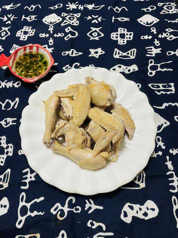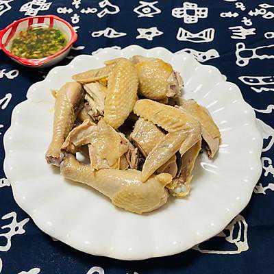 7、切块,摆盘,调一个你喜欢的料汁,蘸着吃。我喜欢的料汁,葱切碎,生姜磨成姜泥,加入滚烫的热油激出香味,加少许盐、生抽即可。