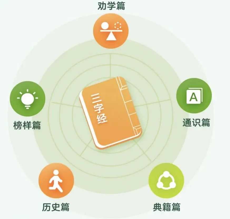 比如国学经典《三字经》,它作为现代小朋友小学语文教材必背内容,包含了人伦义理、文学、历史、天文等多门学科知识,拆解下来,足足能有107个历史启蒙故事讲给孩子听,简单有趣还意味深长。