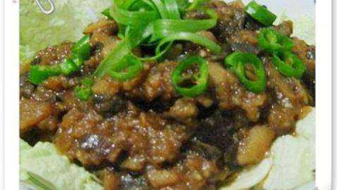 6.装盘时,盘内用白菜叶垫底,与米饭同食~