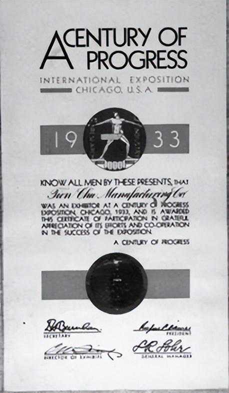 1933年天厨味精厂参加芝加哥世界博览会的参展证书