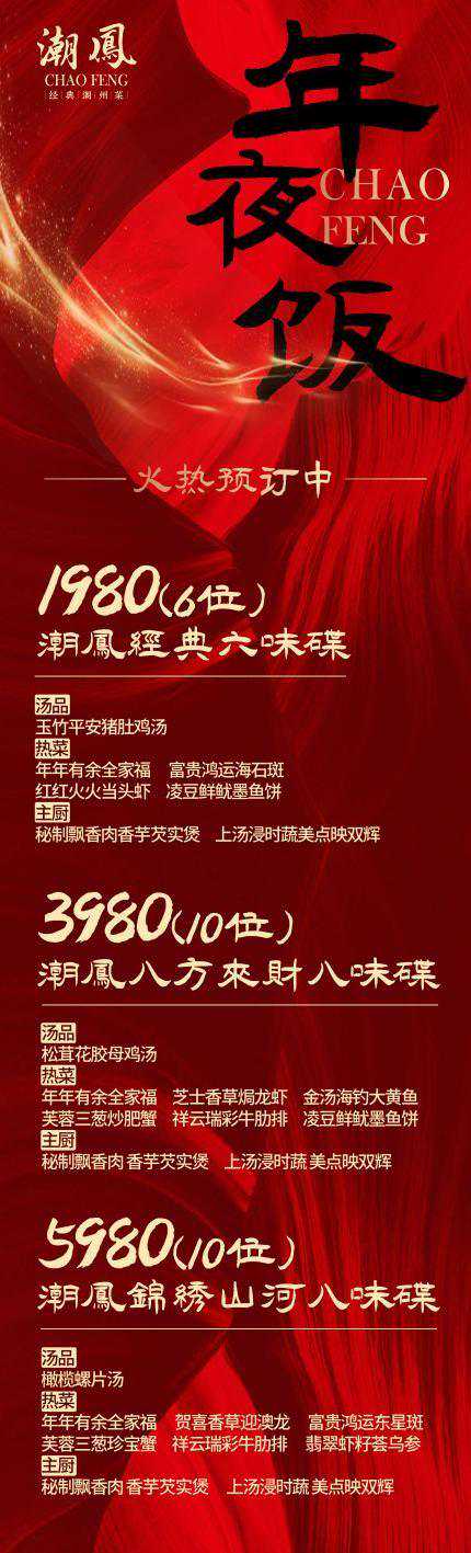 新岁启封,年味渐浓,潮鳯年夜饭预订也已开始咯~共襄团圆宴,祈福安康年,来潮鳯盛启新年!