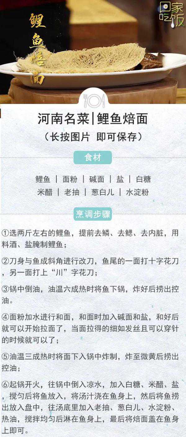 它以健壮的体型在泥沙翻滚的黄河中夺得一席之地,成为百姓餐桌上世代享用的美味。它如丝般纤细,在菜肴上桌时令人拍案叫绝,成为菜肴中的点睛神笔。黄河鲤鱼与焙面本是殊途,却在相遇后彼此共生,携手赢得“河南十大名菜之首”的美誉。